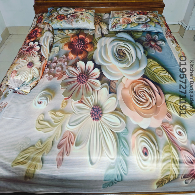 B6 Stylish 3d Bed + Pillow Cover (Premium Quality ১১০০+ গ্রাম গ্যারান্টি)